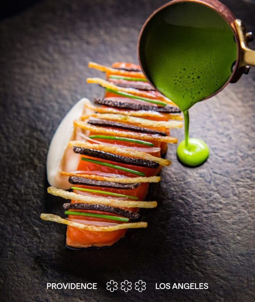 En Hollywood, como ha sido el caso desde su apertura en 2005, la pureza y la precisión son los pilares de la cocina californiana del chef Michael Cimarusti, y su cocina se ha vuelto aún más impresionante con los años. El menú degustación combina inspiración global y técnica clásica con una sensibilidad moderna, utilizando los mariscos más frescos y sostenibles, a menudo capturados en aguas estadounidenses.