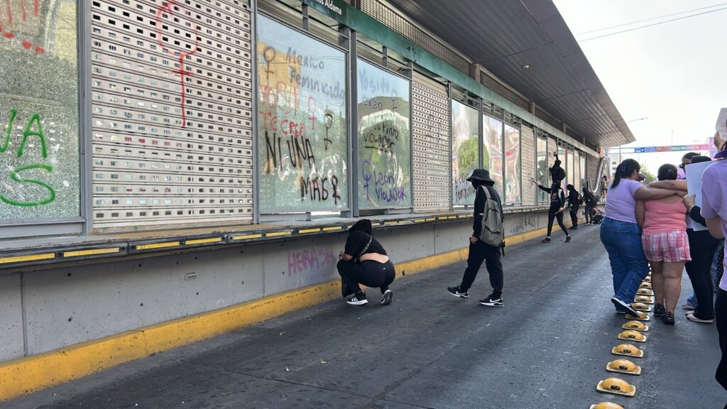 Durante el trayecto se registraron diversos daños en infraestructura urbana y mobiliario. Paraderos del Sistema Integrado de Transporte ubicados en la zona del Expiatorio, Hermanos Aldama y el Centro Histórico resultaron vandalizados, al igual que algunos negocios que previamente se protegieron con madera, entre ellos bancos, escuelas y comercios del primer cuadro de la ciudad.