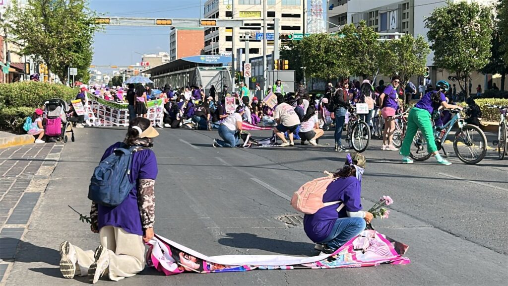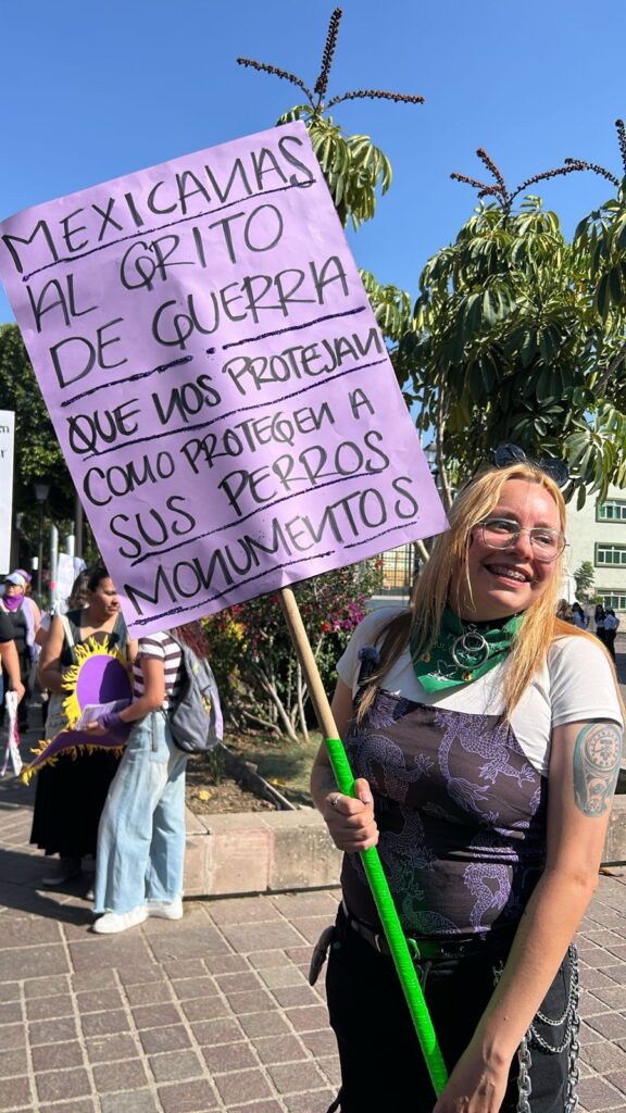 Durante marcharon con pancartas, consignas y cantos, acompañadas por colectivas feministas, estudiantes, madres de víctimas de feminicidio y familias que se sumaron a la movilización para exigir justicia y mayor seguridad para las mujeres.